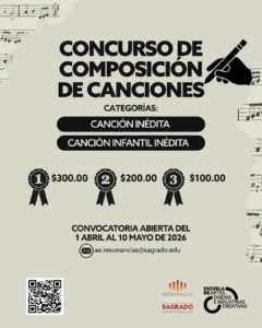 La Asociación Estudiantil Resonancias, perteneciente al Programa de Música de la Universidad del Sagrado Corazón, invita formalmente a la comunidad estudiantil, al personal administrativo y a los ex alumnos del Programa de Música a participar en la primera edición de su certamen de composición. Este espacio ha sido creado con el propósito de fomentar la creación musical y brindar una plataforma de exposición para las nuevas voces de nuestra institución.